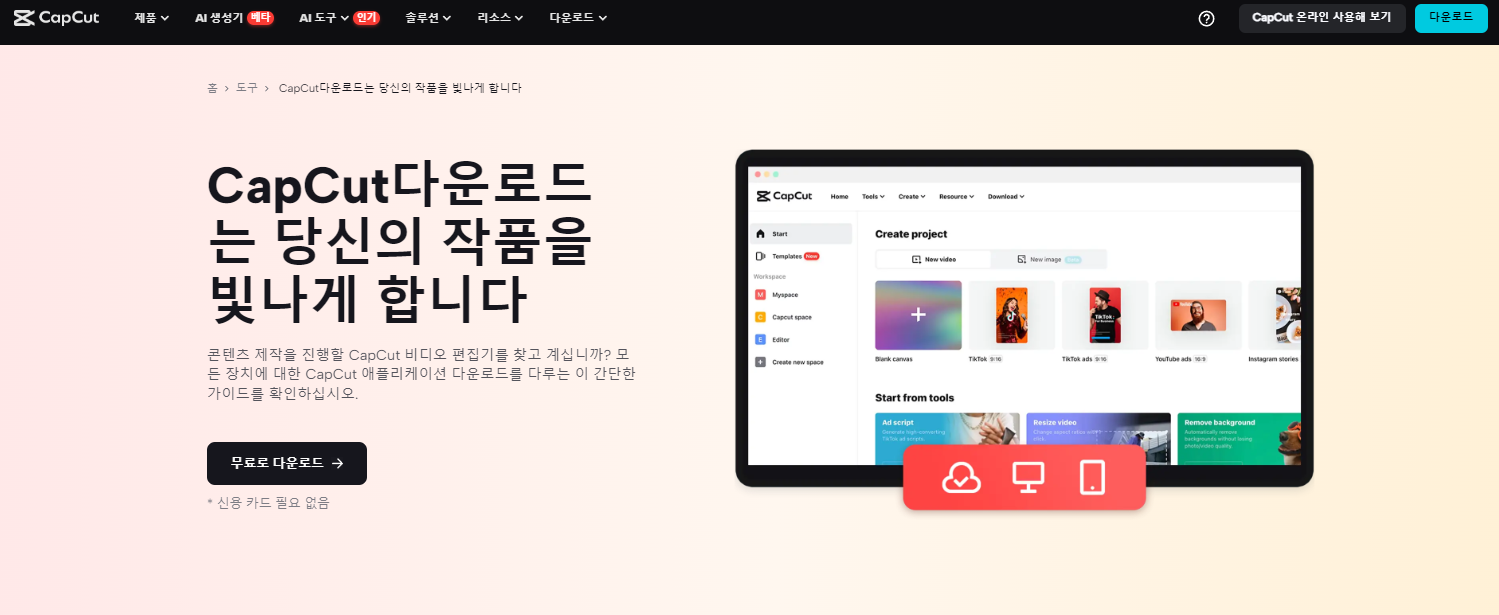1. 캡컷Capcut PC 다운로드 무료 설치