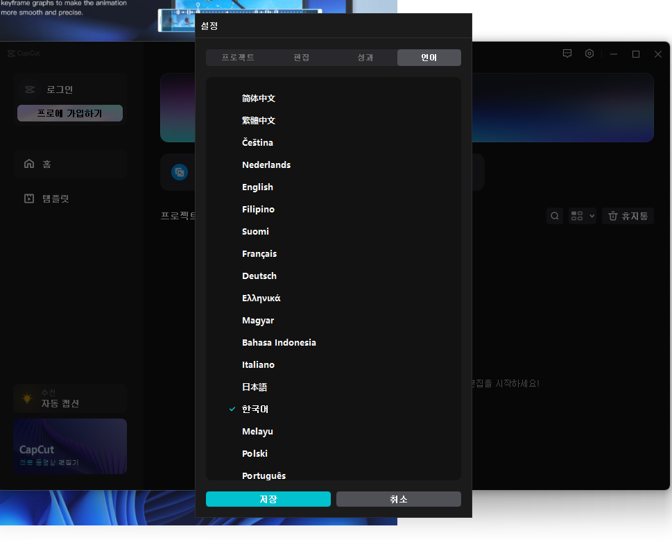 2. 캡컷Capcut PC 언어설정